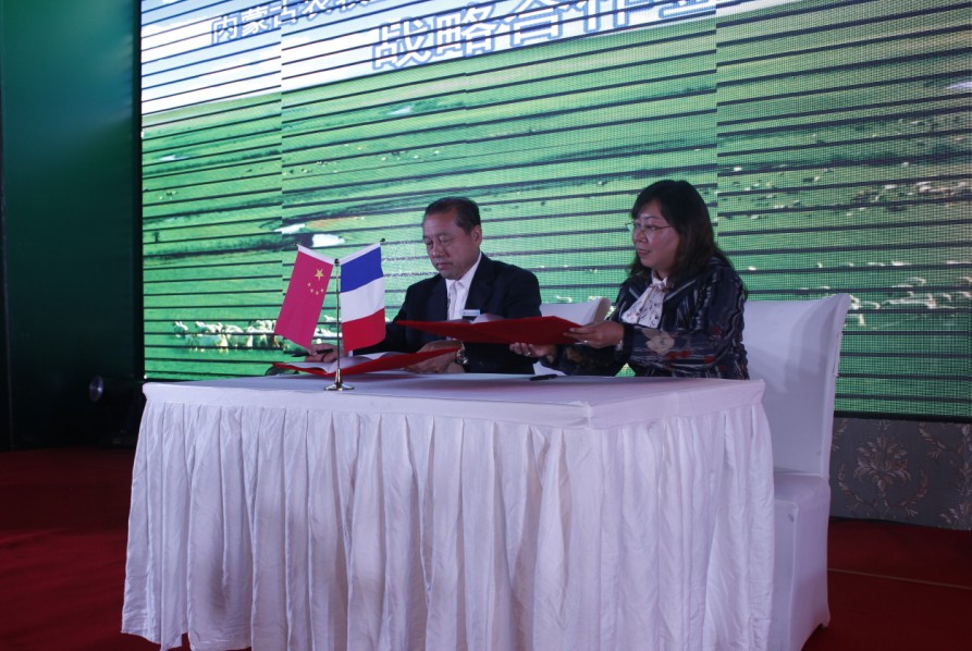 領(lǐng)導(dǎo)致辭后,內(nèi)蒙古農(nóng)牧業(yè)產(chǎn)業(yè)化龍頭企業(yè)協(xié)會同法國工商會共同簽署了友好合作協(xié)議。