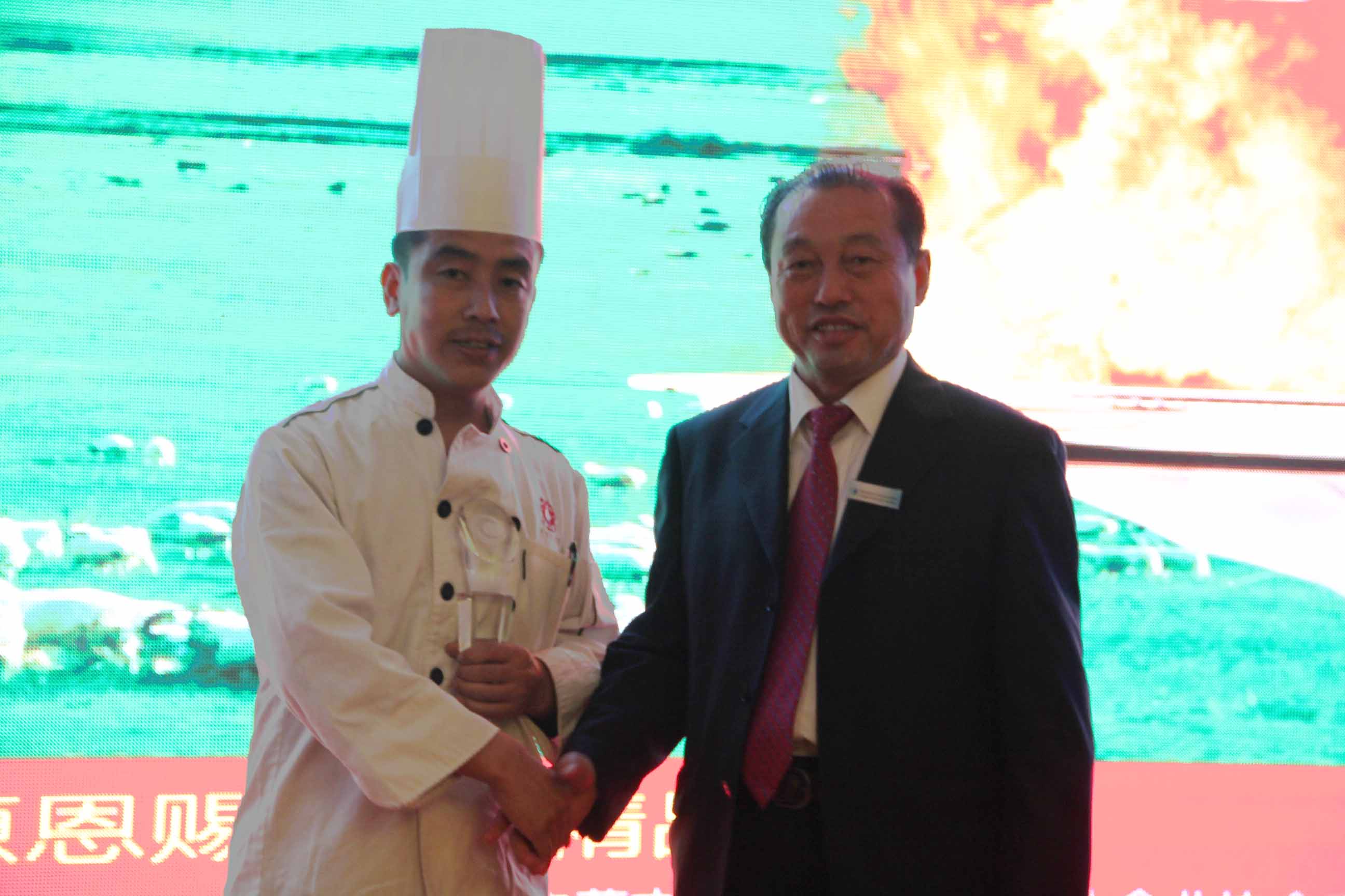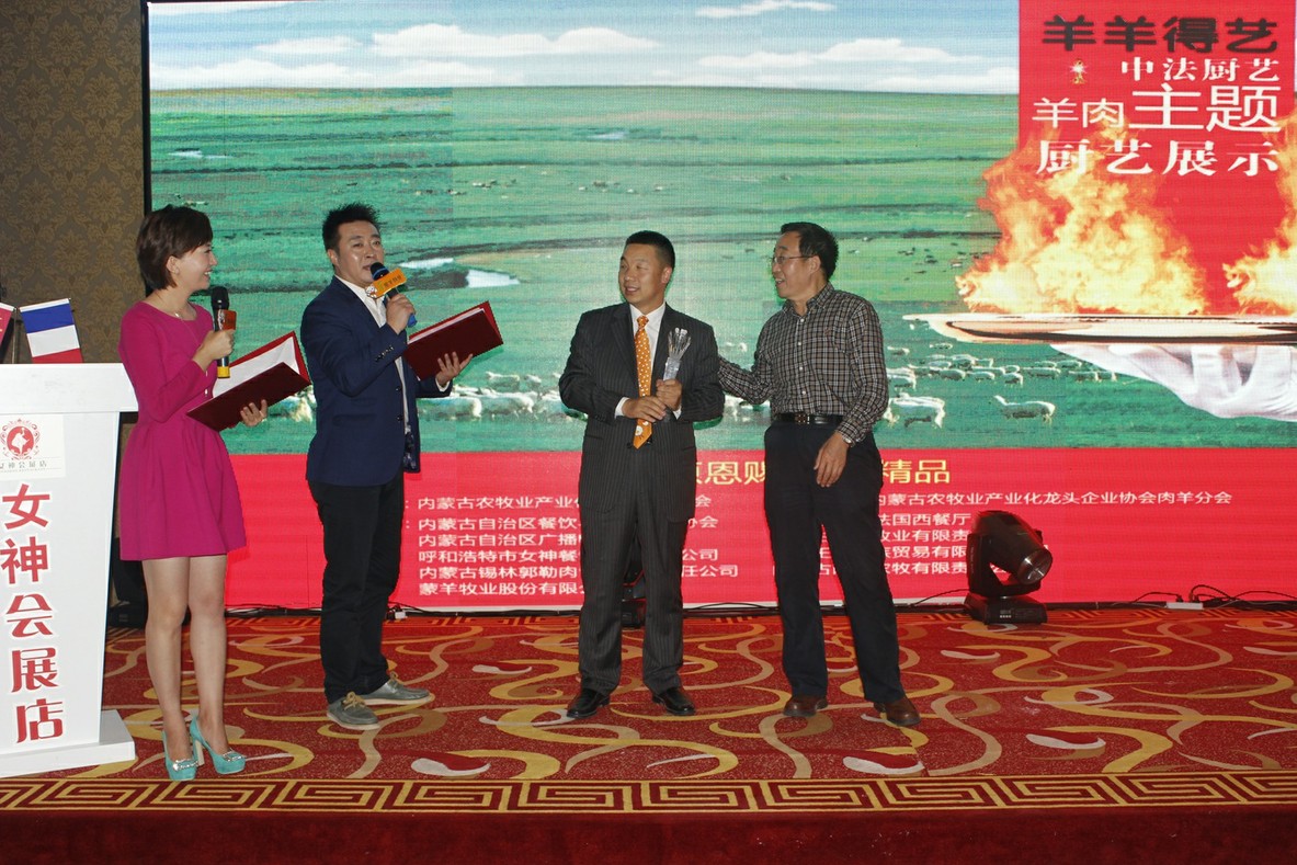 本次廚藝比拼展示主要是中法兩國廚師之間的高手對決。兩國大廚根據(jù)羊肉的不同部位烹飪出各道菜品。本次比拼的標準主要是養(yǎng)生、創(chuàng)意和具有地域特色。各評委經(jīng)過仔細品嘗后評選出特等獎、一等獎各一名。最終由遠道而來的法國大廚獲得特等獎,我們中國廚師隊獲得一等獎。原副主任雷·額爾德尼和原副主席傅守正為獲獎選手頒發(fā)獎杯。