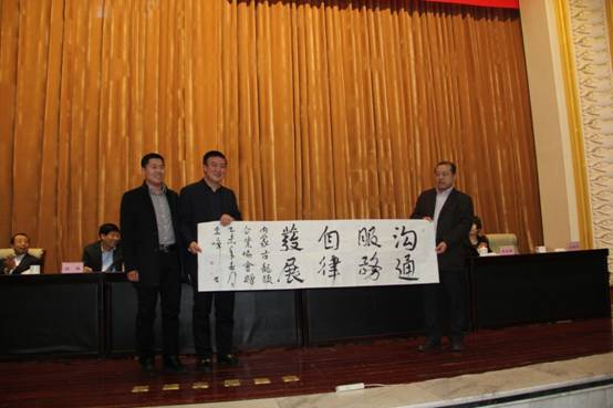 會上,內(nèi)蒙古農(nóng)牧業(yè)產(chǎn)業(yè)化龍頭企業(yè)協(xié)會執(zhí)行會長林永亮向包頭市農(nóng)牧業(yè)產(chǎn)業(yè)化龍頭企業(yè)協(xié)會贈送牌匾,余佳榮會長和陸玉龍副會長代表協(xié)會接受牌匾。
