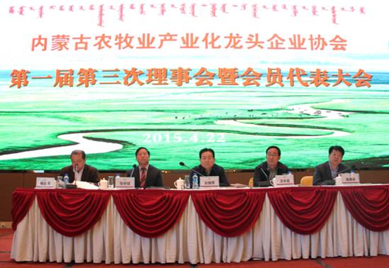 2015422,內(nèi)蒙古農(nóng)牧業(yè)產(chǎn)業(yè)化龍頭企業(yè)協(xié)會(huì)第一屆第三次理事會(huì)暨會(huì)員代表大會(huì),在呼和浩特市賓悅大酒店隆重舉行。
