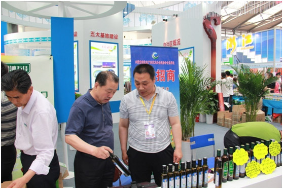 內(nèi)蒙古農(nóng)牧業(yè)廳產(chǎn)業(yè)化處處長王補(bǔ)在與協(xié)會執(zhí)行會長林永亮參觀展位