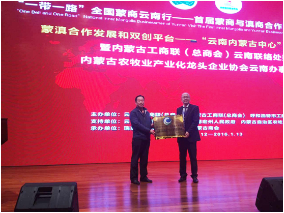 112日下午,由云南省工商聯(lián)(總商會(huì))、內(nèi)蒙古自治區(qū)工商聯(lián)(總商會(huì))、內(nèi)蒙古自治區(qū)呼和浩特市工商聯(lián)(總商會(huì))主辦,云南省招商合作局、云南省德宏州人民政府、內(nèi)蒙古自治區(qū)農(nóng)牧業(yè)廳支持,內(nèi)蒙古農(nóng)牧業(yè)產(chǎn)業(yè)化龍頭企業(yè)協(xié)會(huì)聯(lián)合主辦,瑞麗市人民政府和云南省內(nèi)蒙古商會(huì)共同承辦的首屆“一帶一路”全國蒙商云南行——蒙商與滇商合作發(fā)展(瑞麗)論壇在德宏州瑞麗市隆重舉行。