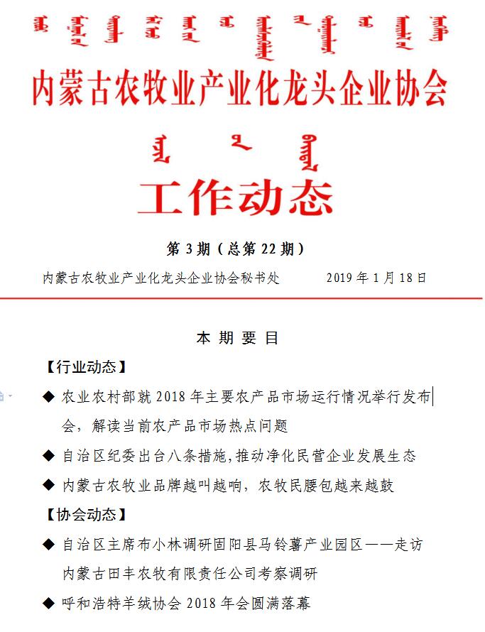 標(biāo)題:內(nèi)蒙古農(nóng)牧業(yè)產(chǎn)業(yè)化龍頭企業(yè)協(xié)會工作動態(tài)第3期(總第22期)