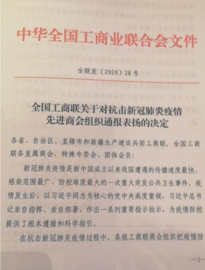 標(biāo)題:“抗擊新冠肺炎疫情先進(jìn)商會” 既是榮譽(yù),也是前行的動力