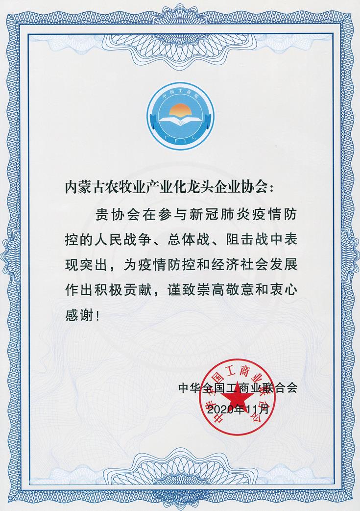 在抗擊新冠肺炎疫情過程中,內(nèi)蒙古農(nóng)牧業(yè)產(chǎn)業(yè)化龍頭企業(yè)協(xié)會把疫情防控作為重大政治任務(wù),堅決貫徹落實習(xí)近平總書記重要指示精神和黨中央、自治區(qū)決策部署,立足自身優(yōu)勢,主動擔(dān)當(dāng)作為,統(tǒng)籌做好疫情防控和復(fù)工復(fù)產(chǎn),為統(tǒng)籌推進(jìn)疫情防控和經(jīng)濟(jì)社會發(fā)展取得階段性勝利做出了重要貢獻(xiàn)。