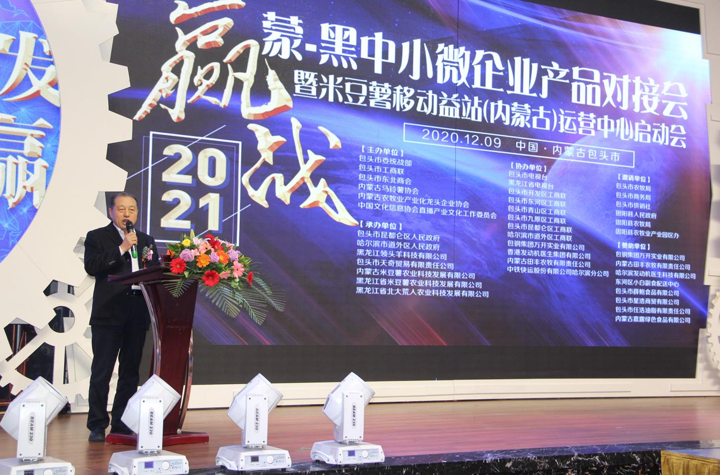 2020年12月9日,由包頭市委統(tǒng)戰(zhàn)部、包頭市工商聯(lián)、內(nèi)蒙古農(nóng)牧業(yè)產(chǎn)業(yè)化龍頭企業(yè)協(xié)會等多家單位聯(lián)合主辦的“蒙-黑中小微企業(yè)產(chǎn)品對接會暨米豆薯移動益站(內(nèi)蒙古)運營中心啟動儀式”在內(nèi)蒙古包頭市成功舉辦。內(nèi)蒙古農(nóng)牧業(yè)產(chǎn)業(yè)化龍頭企業(yè)協(xié)會執(zhí)行會長林永亮應(yīng)邀出席會議并致辭。