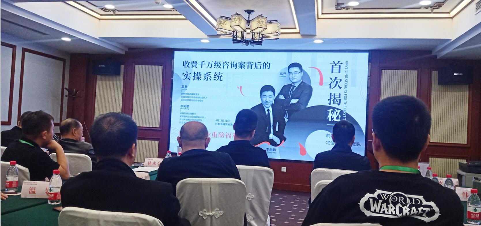 2021419日上午,由內(nèi)蒙古農(nóng)牧業(yè)產(chǎn)業(yè)化龍頭企業(yè)協(xié)會和上海黑蝶戰(zhàn)略定位主辦,呼市成略定位咨詢承辦的前特勞特定位首席團隊-首次揭秘“收費千萬級咨詢案背后的實操系統(tǒng)”課程在呼和浩特市賓悅大酒店舉辦。協(xié)會執(zhí)行會長林永亮應(yīng)邀參加本次課程。