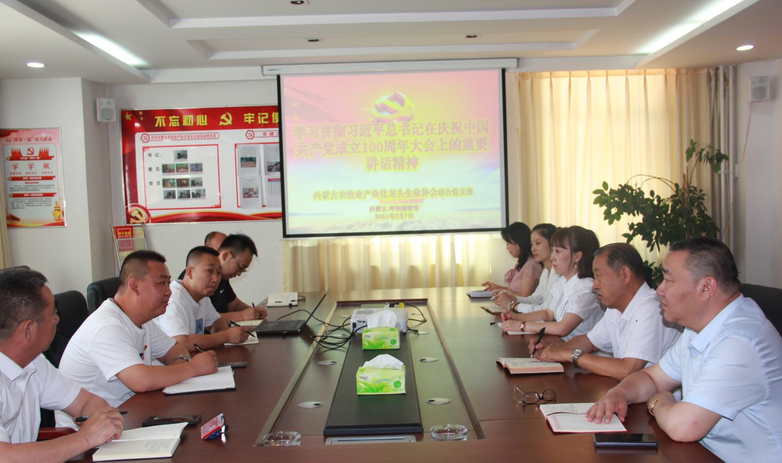 2021年7月7日上午,內(nèi)蒙古農(nóng)牧業(yè)產(chǎn)業(yè)化龍頭企業(yè)協(xié)會(huì)聯(lián)合黨支部書記李陽(yáng)主持召開(kāi)“學(xué)習(xí)貫徹習(xí)近平總書記在慶祝中國(guó)共產(chǎn)黨成立100周年大會(huì)上的重要講話精神”座談會(huì)。協(xié)會(huì)會(huì)長(zhǎng)周勇,執(zhí)行會(huì)長(zhǎng)林永亮,執(zhí)行秘書長(zhǎng)呼群等所有在呼黨員干部參加會(huì)議。