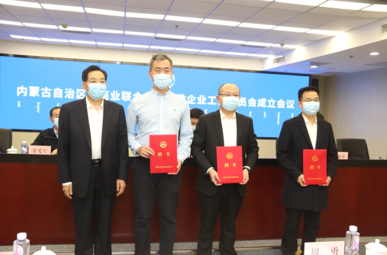 自治區(qū)工商聯(lián)副主席賀立軍為秘書(shū)長(zhǎng)、副秘書(shū)長(zhǎng)頒發(fā)證書(shū)