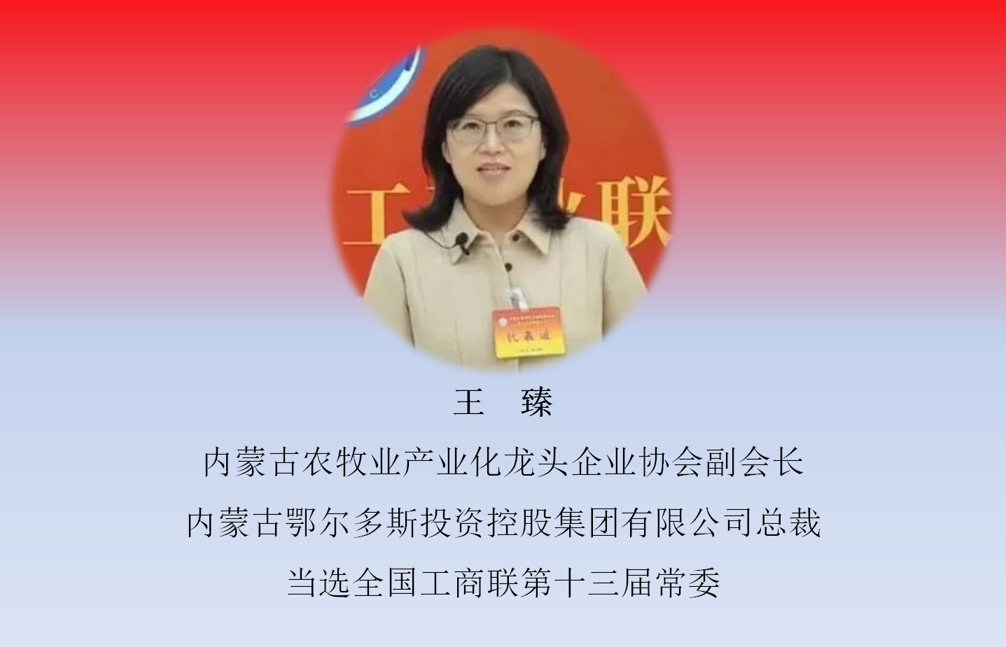 12月11日,中國(guó)工商業(yè)聯(lián)合會(huì)第十三次全國(guó)代表大會(huì)在北京召開(kāi),大會(huì)選舉產(chǎn)生了中華全國(guó)工商業(yè)聯(lián)合會(huì)第十三屆執(zhí)行委員會(huì)。內(nèi)蒙古農(nóng)牧業(yè)產(chǎn)業(yè)化龍頭企業(yè)協(xié)會(huì)4家會(huì)員單位負(fù)責(zé)人當(dāng)選新一屆常委和執(zhí)委。