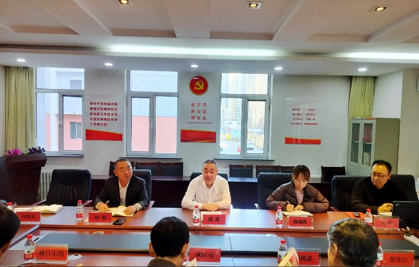 20241226日下午,中共內(nèi)蒙古自治區(qū)委員會(huì)社會(huì)工作部副部長(zhǎng)成紅亮,處長(zhǎng)格日樂(lè)圖、自治區(qū)農(nóng)牧廳二級(jí)巡視員、人事處處長(zhǎng)鄭風(fēng)忠,副處長(zhǎng)賀秀山等一行6來(lái)協(xié)會(huì)調(diào)研指導(dǎo)工作,協(xié)會(huì)會(huì)長(zhǎng)周勇出席會(huì)議,會(huì)議由協(xié)會(huì)秘書(shū)長(zhǎng)呼群主持。