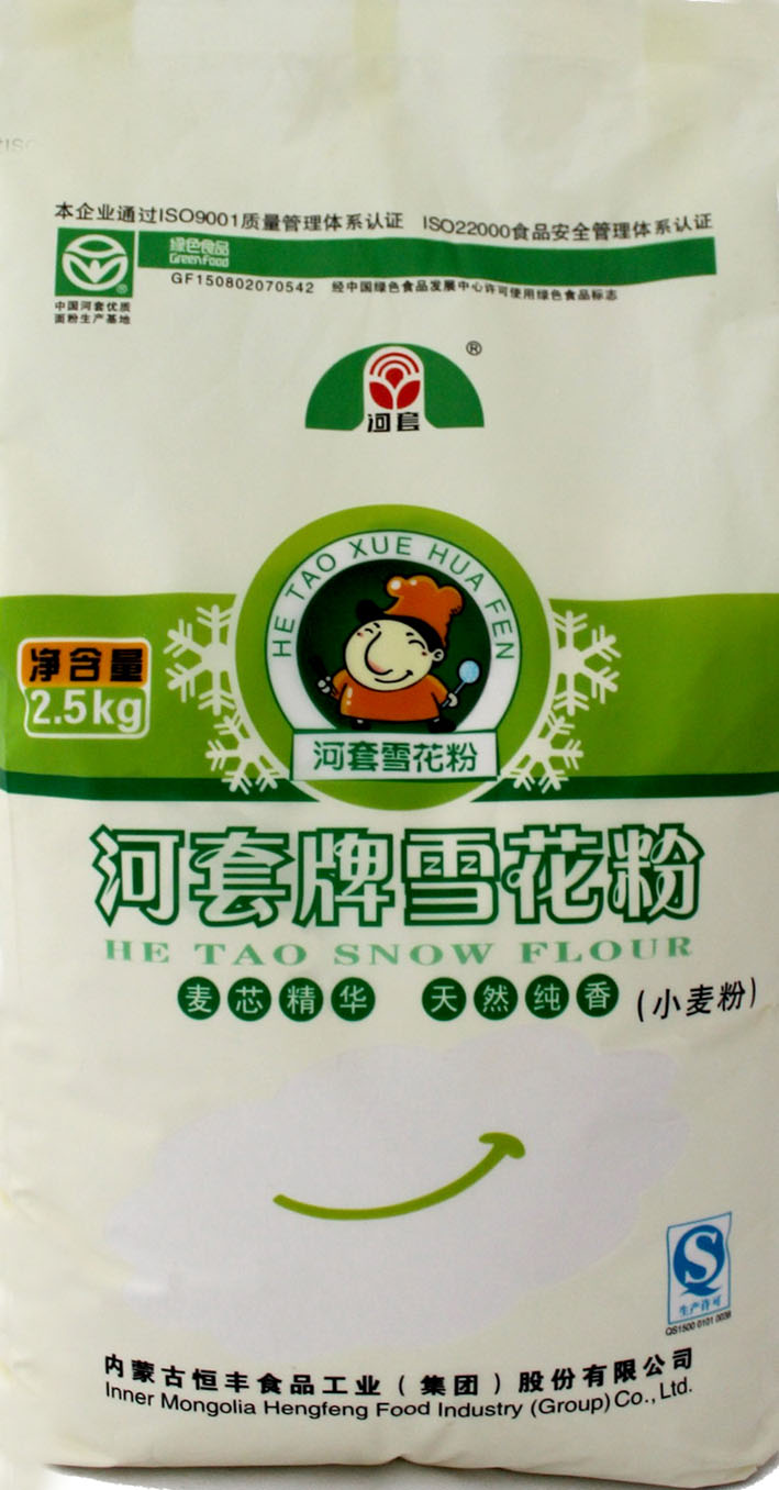 河套雪花粉河套平原優(yōu)質(zhì)小麥的代表產(chǎn)品是中國(guó)優(yōu)質(zhì)面粉的代名詞,出粉率一般在26%~30%,白度可達(dá)到79%,適合制作各類蒸煮食品,自然潔白,為您和家人帶來(lái)品味、品質(zhì)生活。