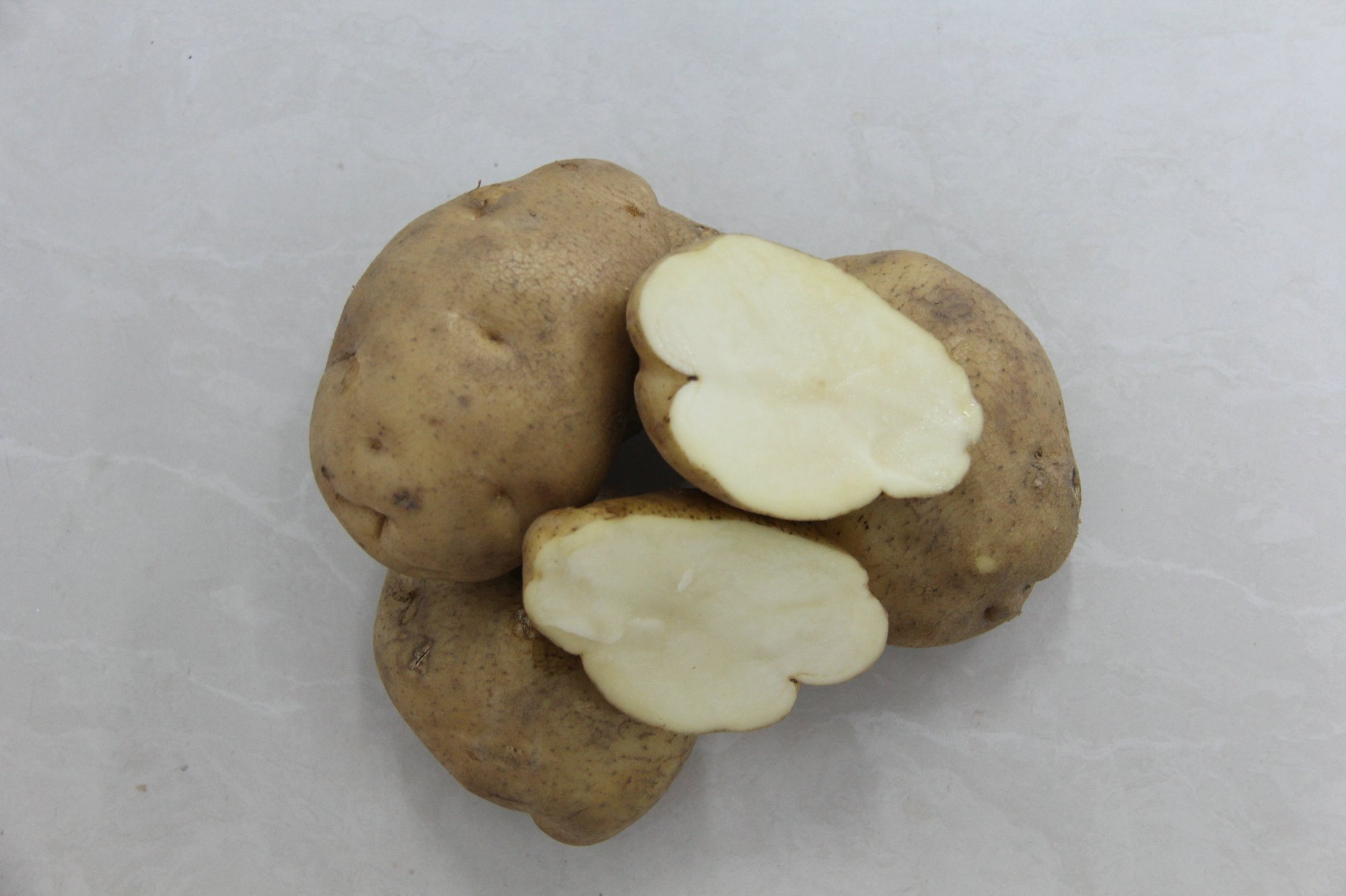 大西洋(Atlantic) 植株繁茂,葉片肥大,花淡紫色,生育期100天左右。株高70厘米左右。塊莖圓形,中薯比例大而整齊,薯皮淡黃色,有麻...