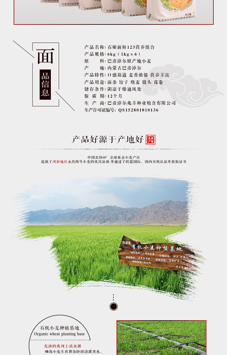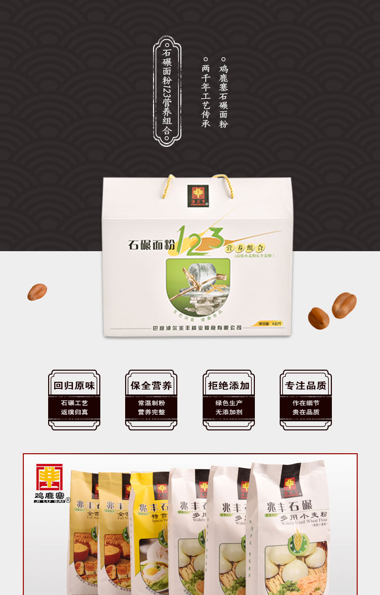 雞鹿塞 石碾面粉123營(yíng)養(yǎng)組合 禮盒 6kg 河套高筋面粉 禮盒
