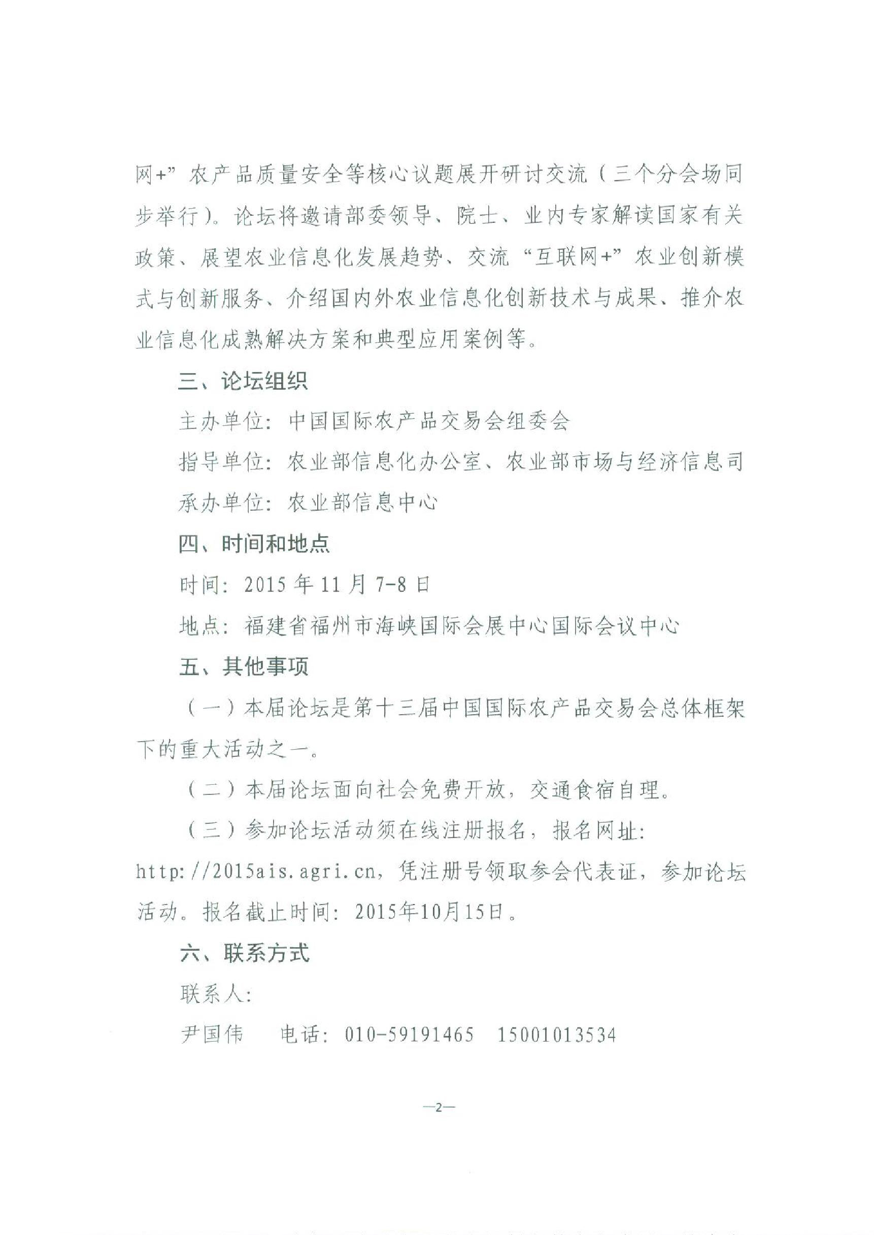 關于舉辦“2015農業(yè)信息化高峰論壇”的通知