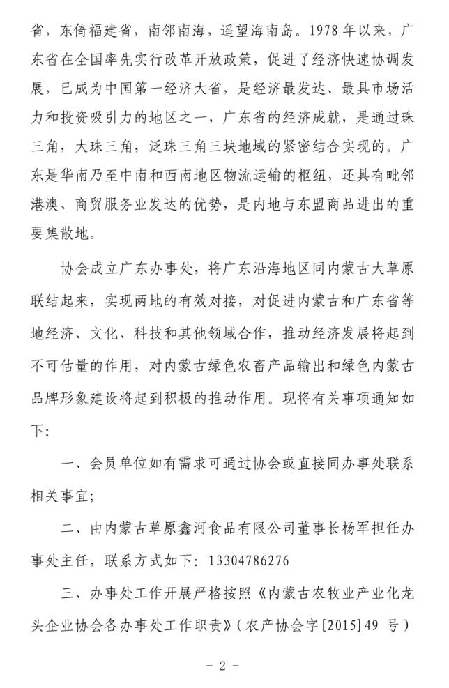 關(guān)于成立內(nèi)蒙古農(nóng)牧業(yè)產(chǎn)業(yè)化龍頭企業(yè)協(xié)會(huì)廣東辦事處的通知
