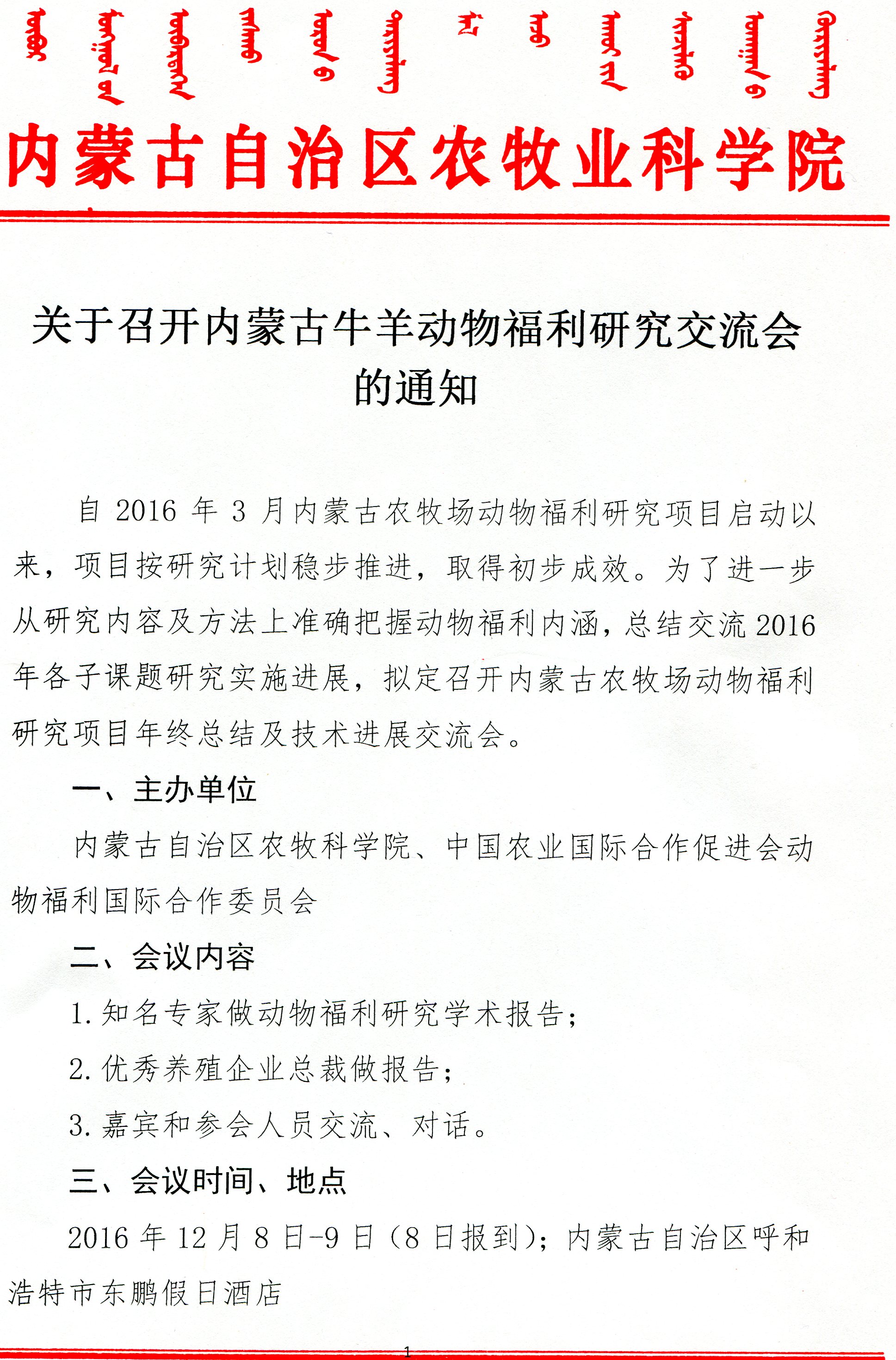 轉(zhuǎn)發(fā):關(guān)于內(nèi)蒙古牛羊動(dòng)物福利研究交流會(huì)的通知