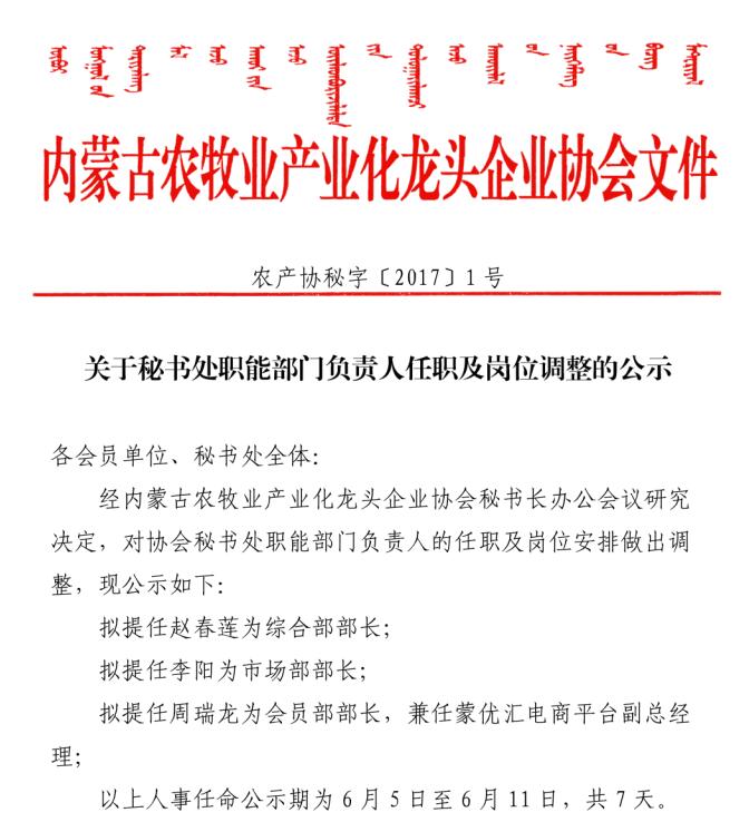 關于秘書處職能部門負責人任職及崗位調(diào)整的公示