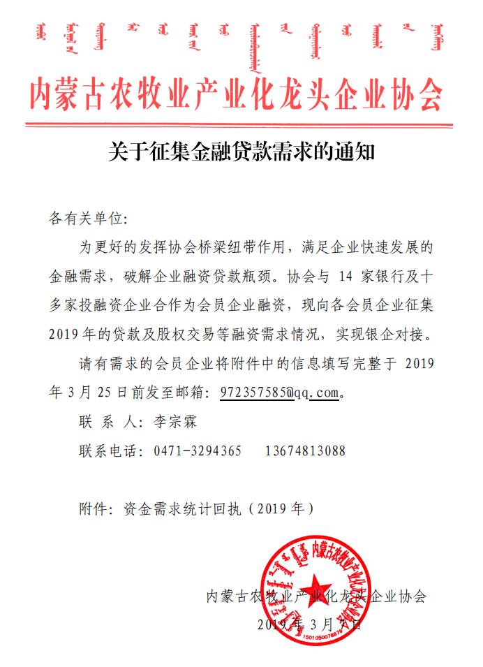 關(guān)于征集金融貸款需求的通知