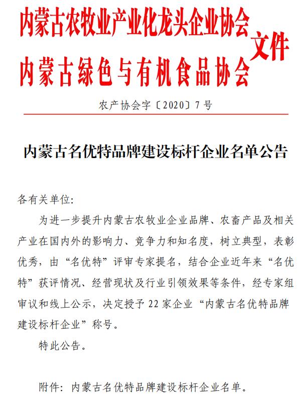 內(nèi)蒙古名優(yōu)特品牌建設(shè)標桿企業(yè)名單公告