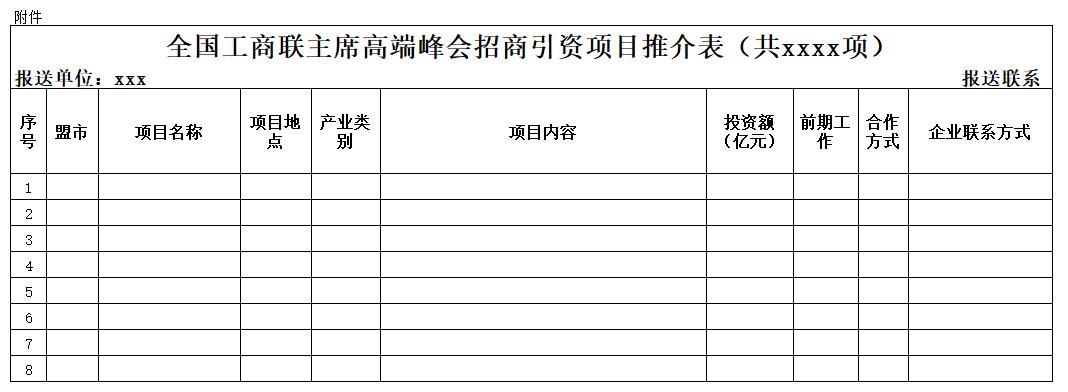 附件《全國工商聯(lián)主席高端峰會招商引資項(xiàng)目推介表》