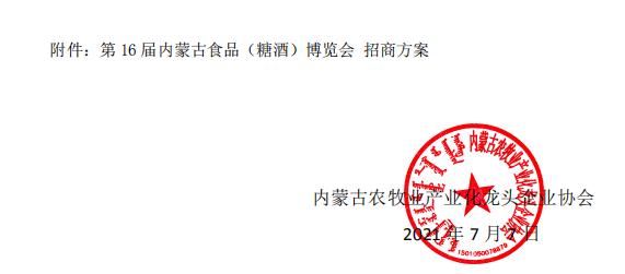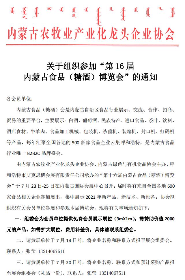 關(guān)于組織參加“第16屆內(nèi)蒙古食品(糖酒)博覽會(huì)”的通知