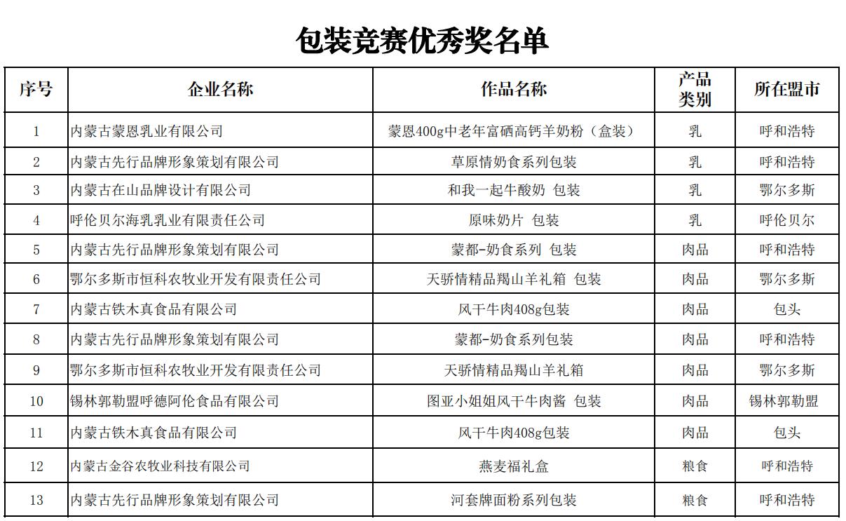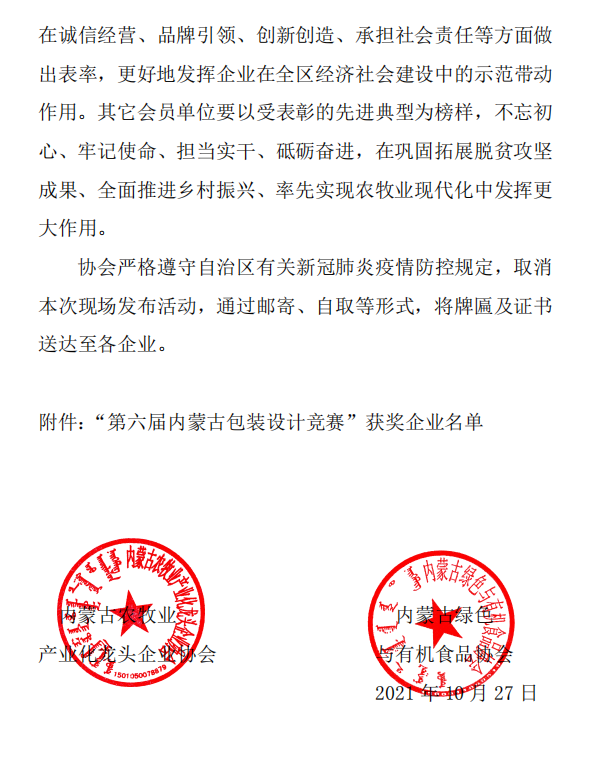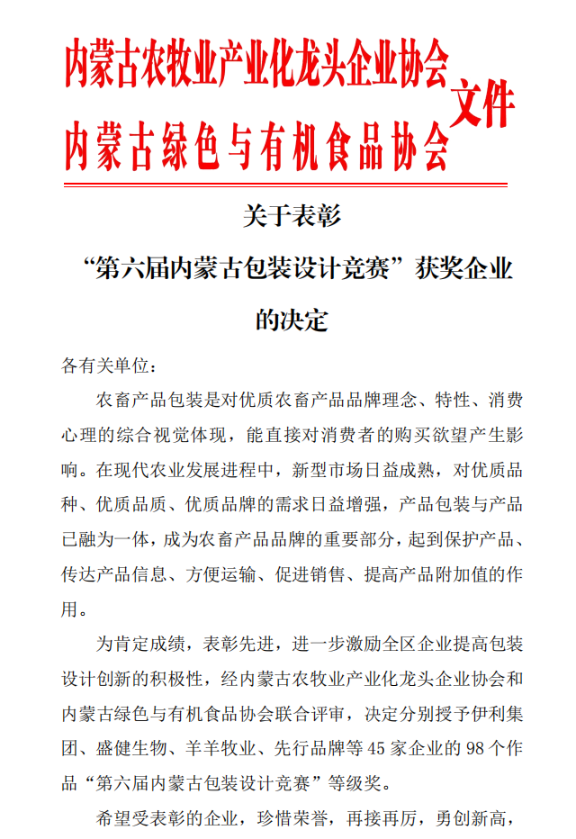 關于表彰 “第六屆內蒙古包裝設計競賽”獲獎企業(yè) 的決定