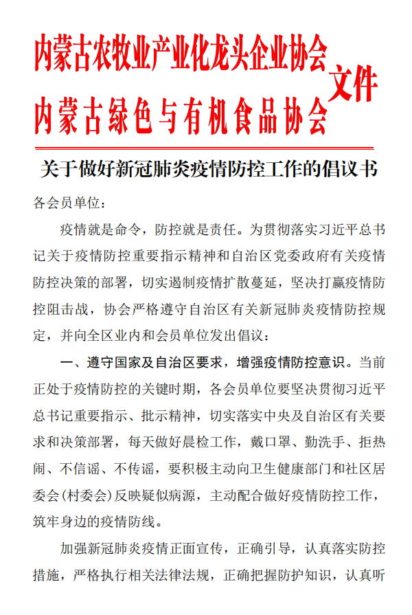 關于做好新冠肺炎疫情防控工作的倡議書