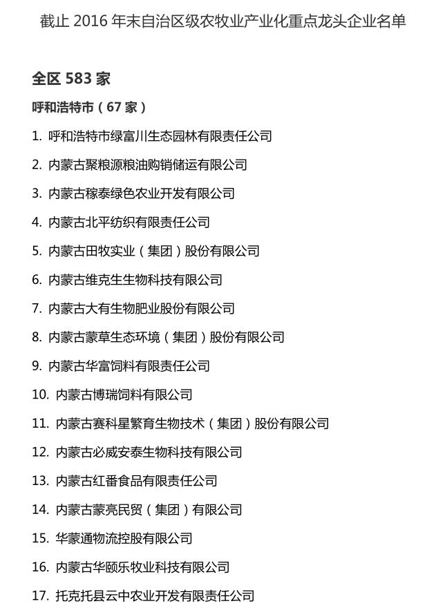 企業(yè)名稱:截止2016年末自治區(qū)級農(nóng)牧業(yè)產(chǎn)業(yè)化 重點龍頭企業(yè)名單​