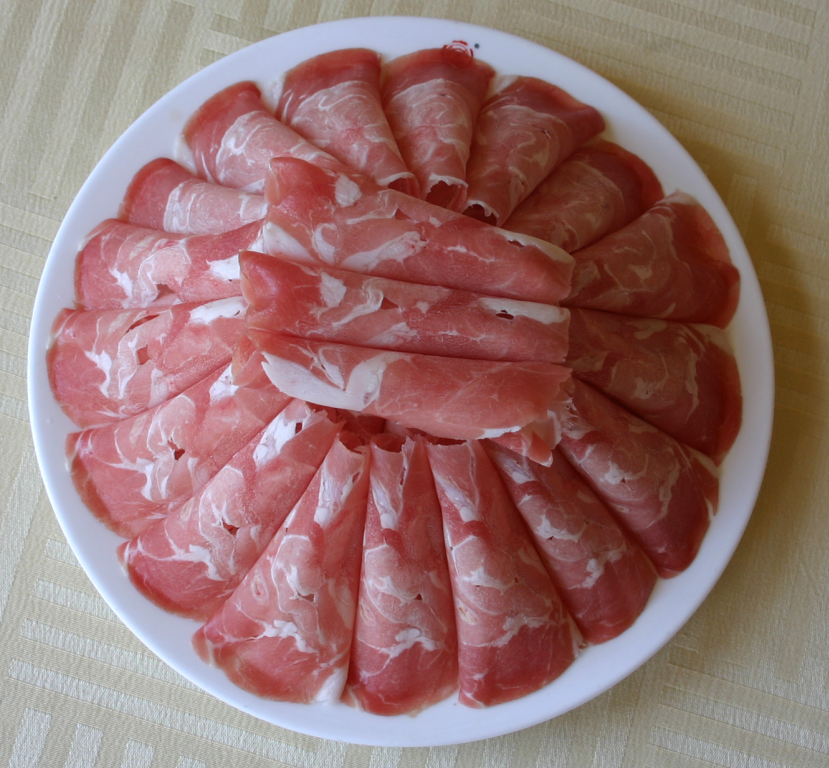 二十七、杜伯羊上腦:選用原料:選自國外引進(jìn),雜交改良的羊種,經(jīng)過精選加工之后,取最精華之上腦部分,層疊壓茬,紅白相間,碼制而成的,其外觀精致,上盤漂亮,口感鮮美爽口。
